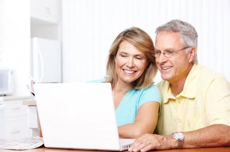 old couple smiling at computer2